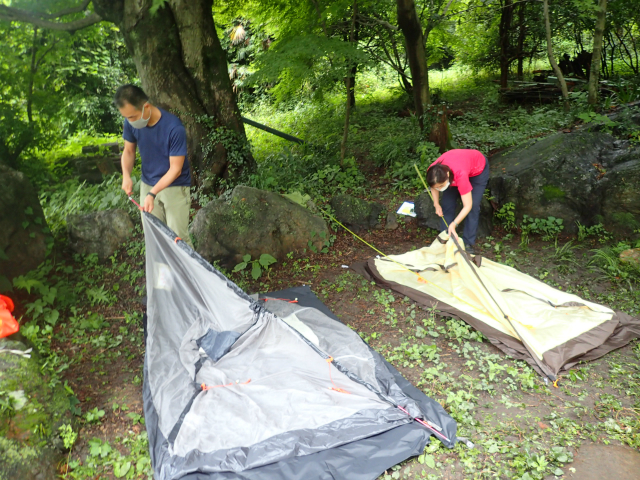 ワークショップ形式のテント泊ワークショップで実際に色々な道具を自分で見て、触って、使ってみながら学べます。