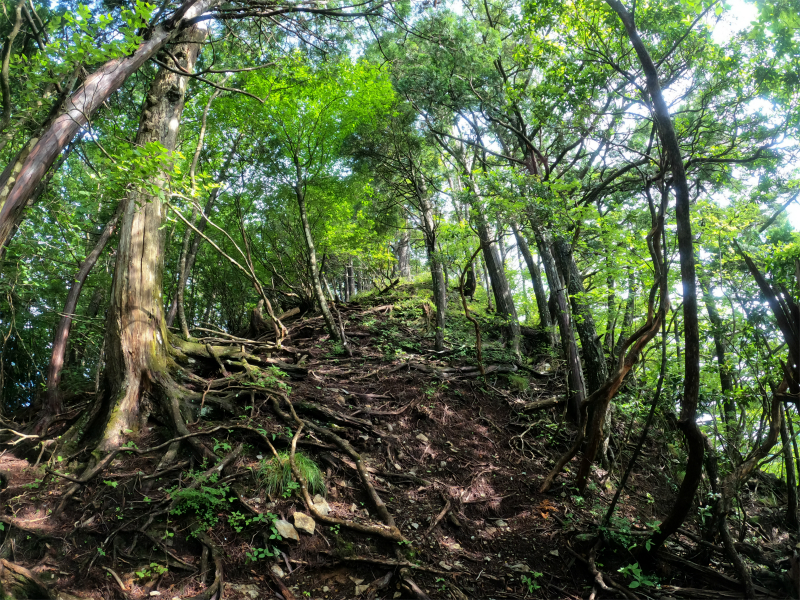 下りは、タワ尾根ノ頭から一石山神社・日原鍾乳洞に向かいます。山と高原地図では破線ルートとして載っているタワ尾根のマイナールートの尾根を下ります。
