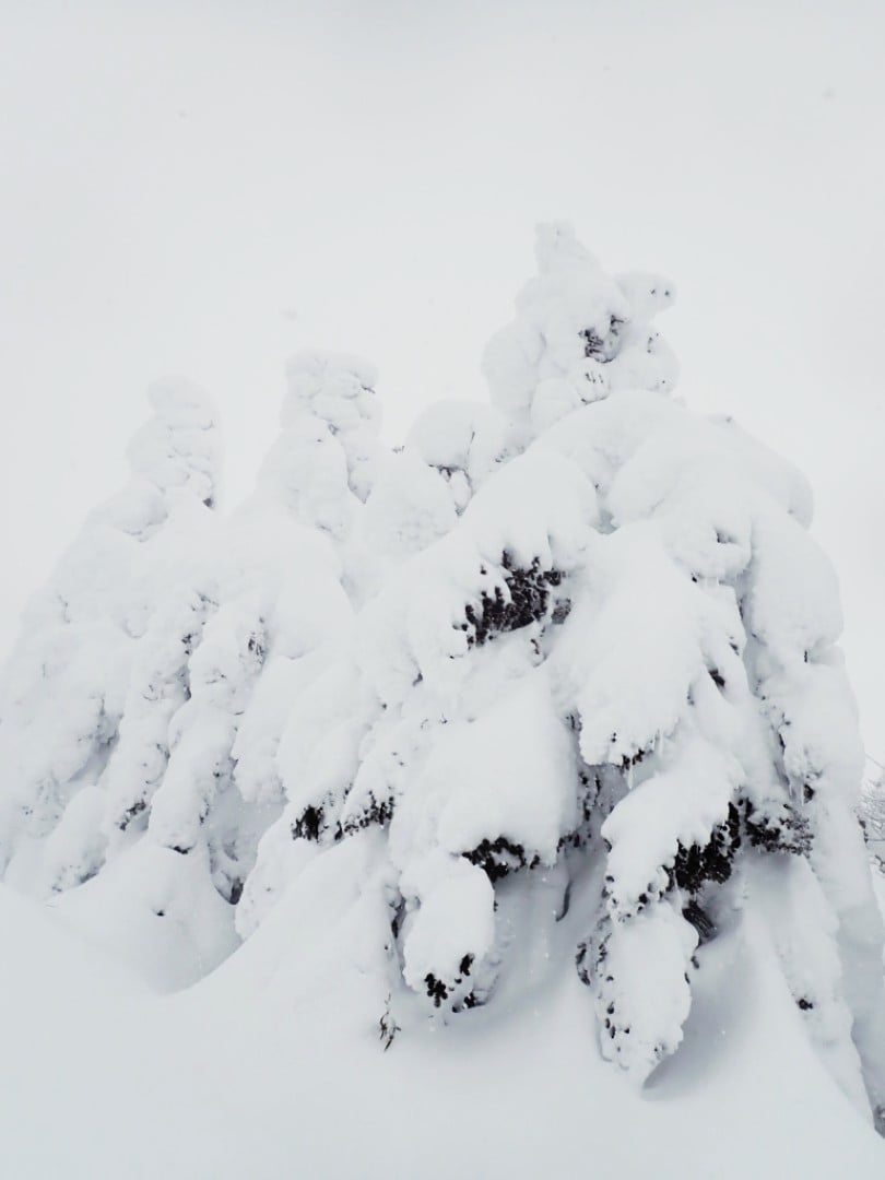 まずは雪に包まれた「お地蔵さん」にお参りしてから、「スノーモンスター」の森へ出発です。雪と氷に覆われた木々が立ち並び、まるで白い怪物たちが並んでいるよう!