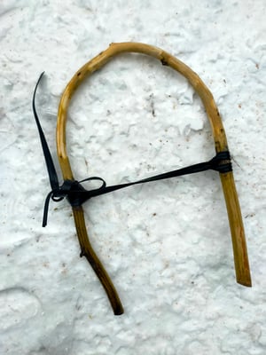 「わかん」は、雪の上を沈まずに歩くための、日本の伝統的な雪上歩行具です。「わかんじき」とも呼ばれ、スノーシューよりも小さく軽く、小回りがきくのが特徴。深い雪の中でもスイスイと歩ける、まさに雪国の知恵が詰まった道具です。現在はアルミ製のものが主流ですが、昔ながらの「わかん」は木や竹を曲げて輪をつくり、縄で丁寧に結んで仕上げます。素朴でありながら機能的な、美しい日本の伝統道具です。