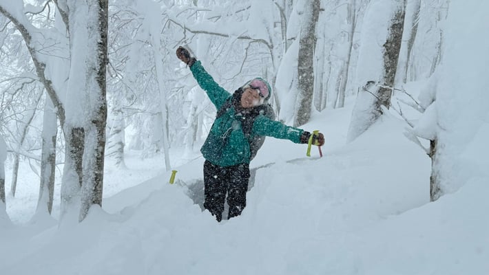日本にはもう長く住んでいますが(雪の少ない東京に)、雪を見るとやはりカナダ人の血が騒ぎ、真っ白な雪の中を走り回ってはしゃぎたくなります!これまでスノーシューやスキー、アイゼンなどで雪山を歩いてきましたが、NHKワールドの番組に出演した際に、日本ならではの「輪かんじき」と出会い、蔵王の樹氷高原を歩きました。その魅力にすっかりとりつかれ、この感動をぜひ皆さんにも味わっていただきたく今年「蔵王わかんツアー」を企画しました。どうぞお楽しみに!