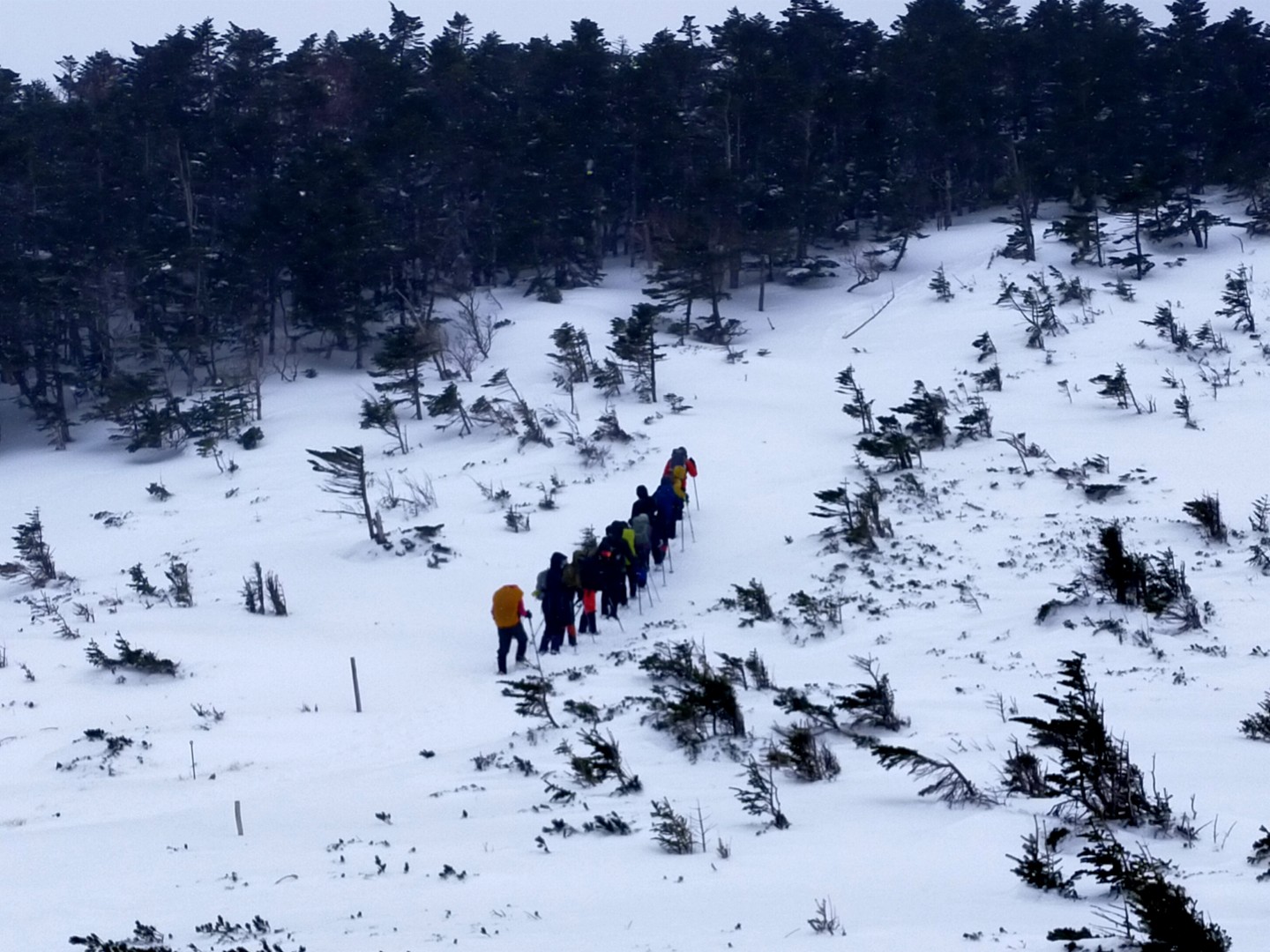 スノーシューツアーの装備・持ち物およびレンタルについてプログラムページをご確認ください。 稜線ではスノーシューからアイゼンに履き替えます。軽アイゼン、もしくはチェーンスパイクをお持ちの方はご持参ください。山小屋でチェインスパイクのレンタルも可能です(レンタル代1000円)。 |