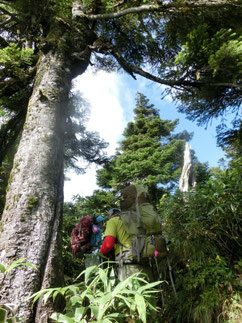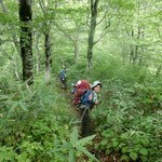 大展望と尾根大縦走はこの3日目で最後となりますが、雲上の高層湿原を通ってから深い森に入り、次の<秘湯>というお楽しみが待っている乳頭温泉郷に向かってどんどん下りて行きます。