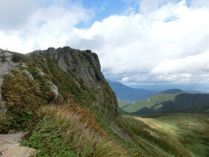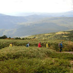 こちらもビッグコースなので再び八合目からの早朝スタート。湯森山と笊森山を通り、乳頭温泉の名山である乳頭山(烏帽子岳)に繋げて行きます。こちらからの展望も素晴らしく、また秋田らしい大展望と感動を味わえます!