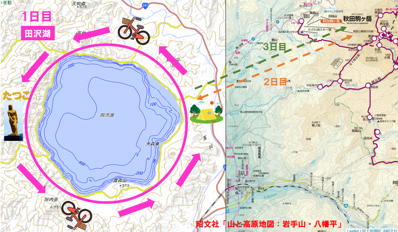 3泊4日で秋田駒ヶ岳、乳頭山、乳頭温泉郷、そして田沢湖までテント泊をしながらフルに満喫できる、練りに練った企画です!