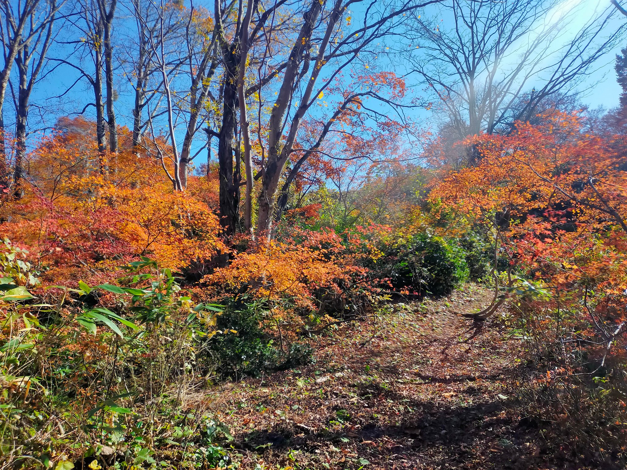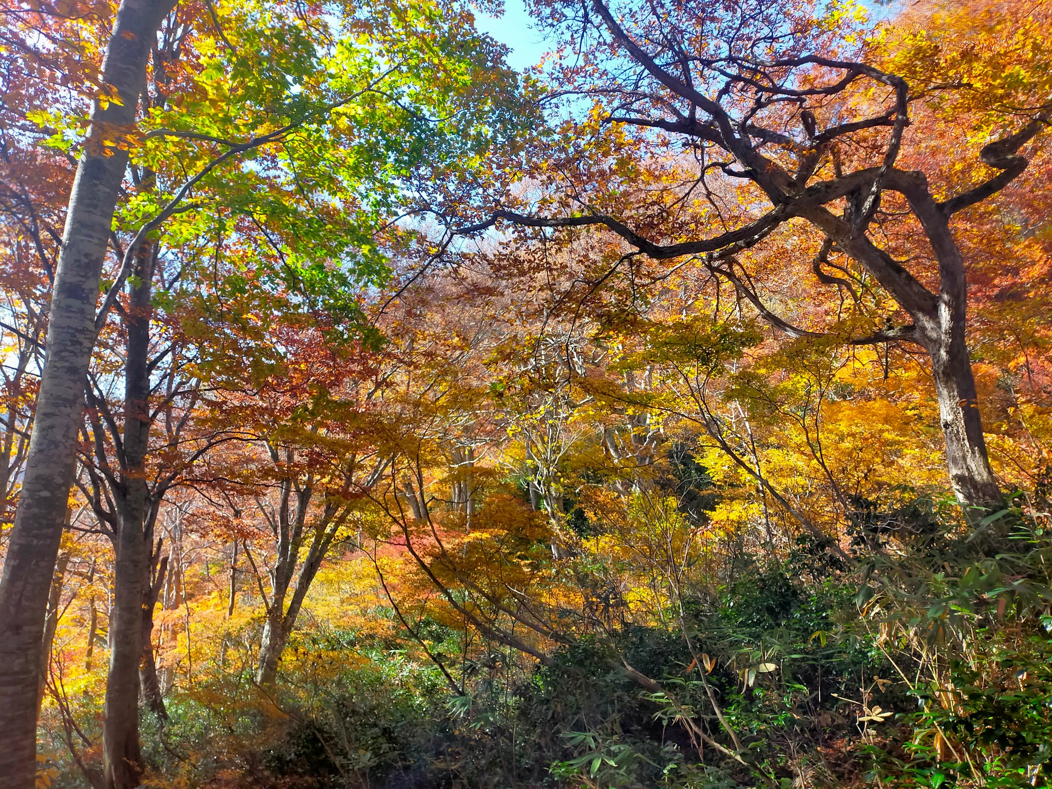 山頂の山小屋で1泊してから、秋山郷の小赤沢と結東の小さな集落を通ってゴールに向かいます。秋山郷は苗場山の麓にある秘境で、2泊目は秋山郷の「萌木の里コテージ」に泊まって結東温泉にも入れます。高い苗場山の上から街まで標高をドンドン下げながら紅葉を楽しめる3日間です。