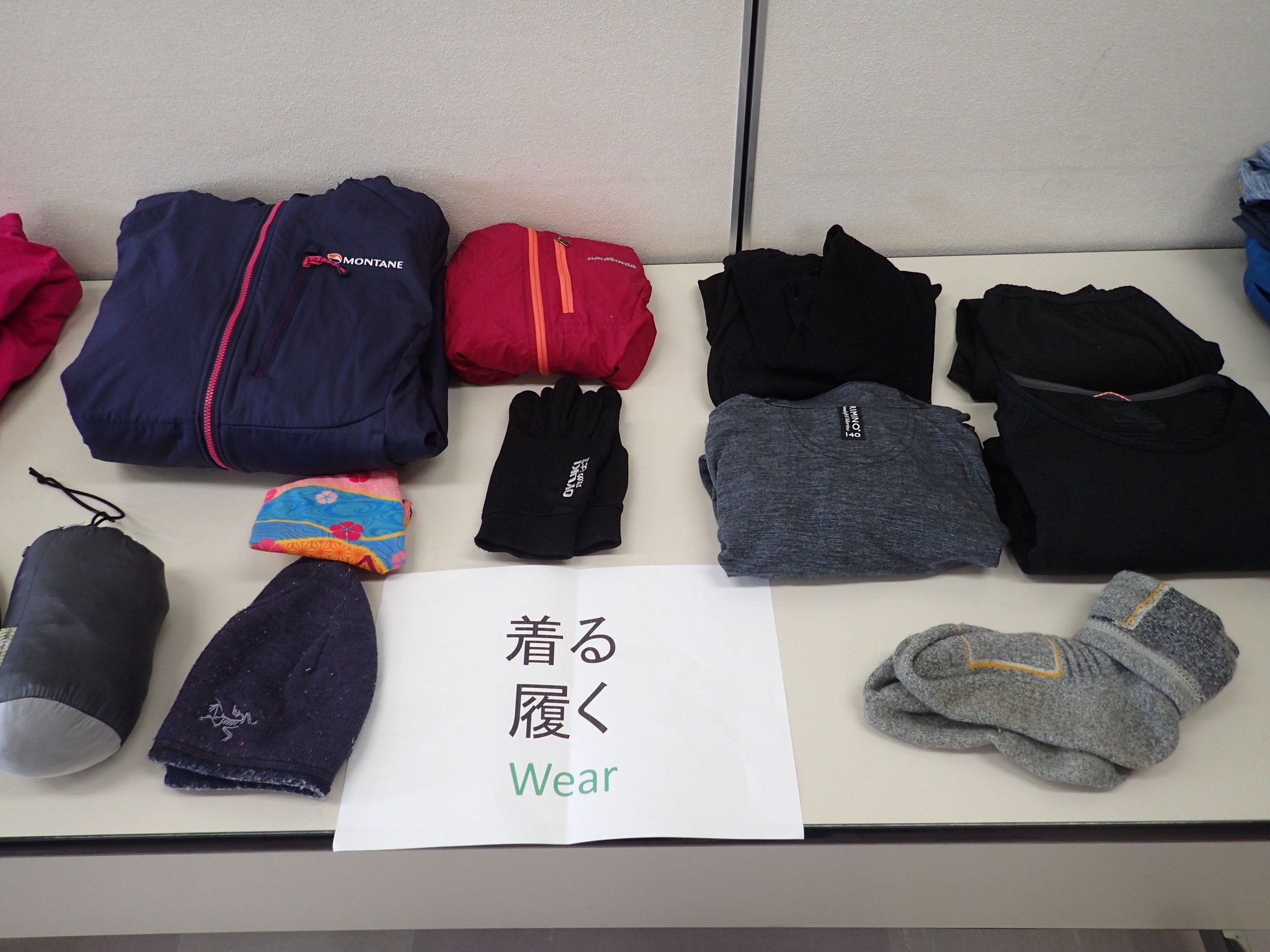 シューズ・ウェア 登山靴★、レインウェア(上下★)、防寒着★、手袋